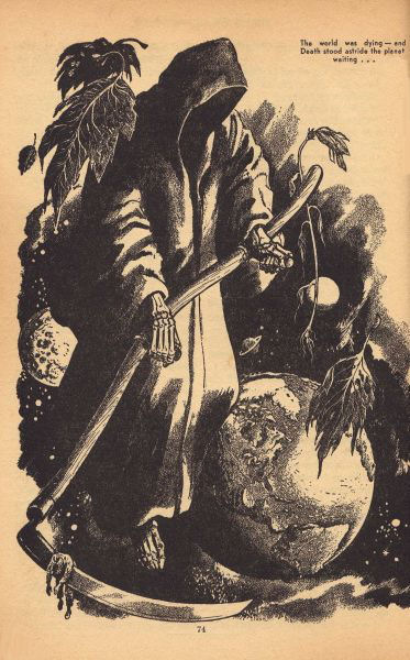 Men sat late that night, pooling their knowledge, preparing the report to the world. A world doomed because green things would no longer be green, and air and food would be choked off, leaving nothing but poison and death.